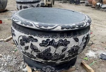 漢白玉浮雕荷花養(yǎng)魚缸,精美庭院裝飾戶外中式花盆