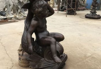 仿民俗情景玻璃鋼叉魚銅人物