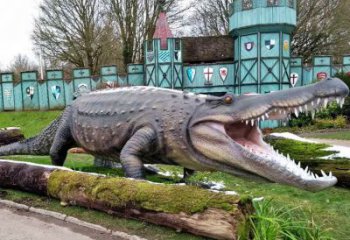 湖邊彩繪玻璃鋼鱷魚雕塑