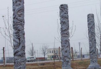 精美仿古園林,花崗巖石龍盤柱點(diǎn)綴