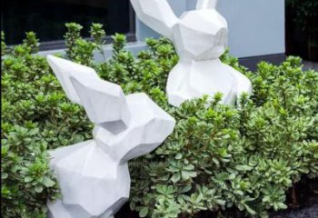 這是一座不銹鋼戶外景觀雕塑,以幾何切面塑白兔形象,綴金色裝飾,簡(jiǎn)約現(xiàn)代,為場(chǎng)地添靈動(dòng)活力 。