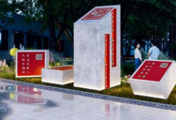 該景觀雕塑巧妙融合實(shí)用與文化傳承。采用石材打造坐凳,石材質(zhì)樸且富有質(zhì)感,契合景觀雕塑自然、沉穩(wěn)的氣質(zhì),既為人們提供休憩之處,又成為公共空間的藝術(shù)點(diǎn)綴。將 “禮”“讓”“義” 等代表中華傳統(tǒng)美德的文字,以發(fā)光形式呈現(xiàn)于石材坐凳之上,使坐凳不再只是簡單的休憩設(shè)施,更成為傳遞文化精神的載體。當(dāng)人們落座于這些帶有美德文字的坐凳,既能在舒適中感受景觀之美,又能潛移默化地接受傳統(tǒng)美德的熏陶,讓文化傳播與日常休憩場景有機(jī)結(jié)合,營造出富有詩意與人文關(guān)懷的公共空間氛圍。