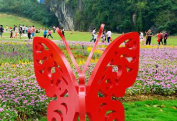 不銹鋼網(wǎng)格池塘蝴蝶雕塑